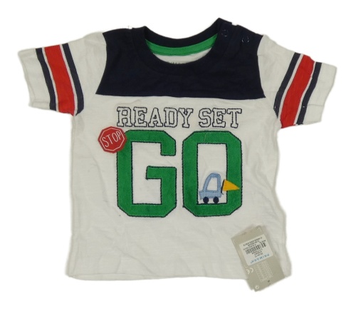 Nové - bílo-tmavomodré tričko s nápisy a autem a pruhy PRIMARK