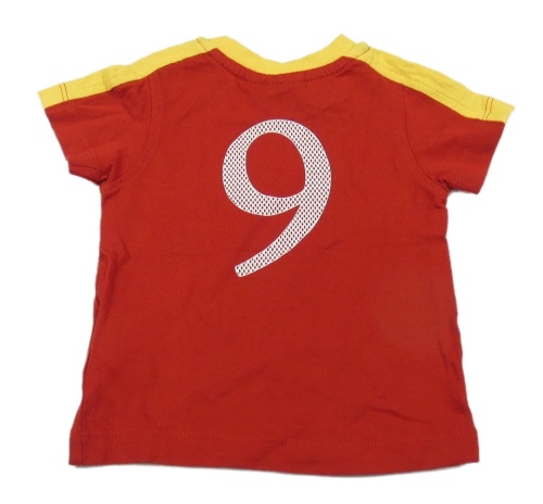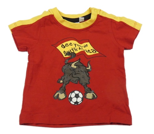 Červené tričko s býkem a žlutým lemem