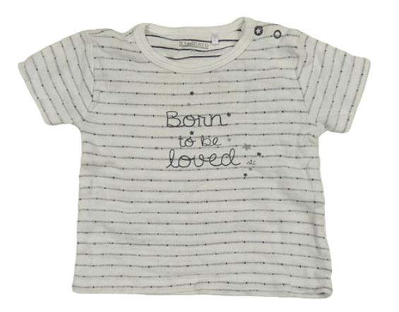 Bílo-šedé pruhované tričko s puntíky a nápisem Staccato