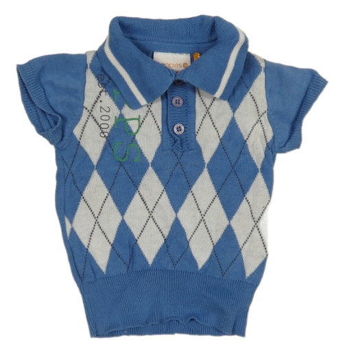 Modro-světlešedé kárované pletené polo tričko s nápisem Noppies