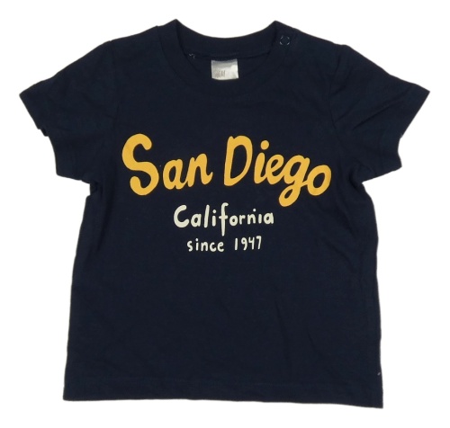 Tmavomodré tričko s nápisem H&M