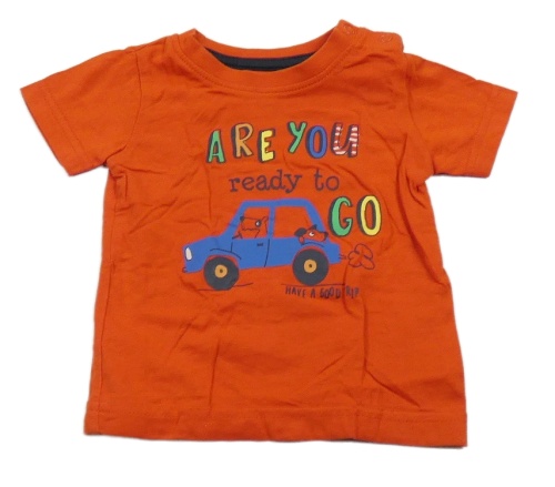 Červené tričko s autem a nápisy