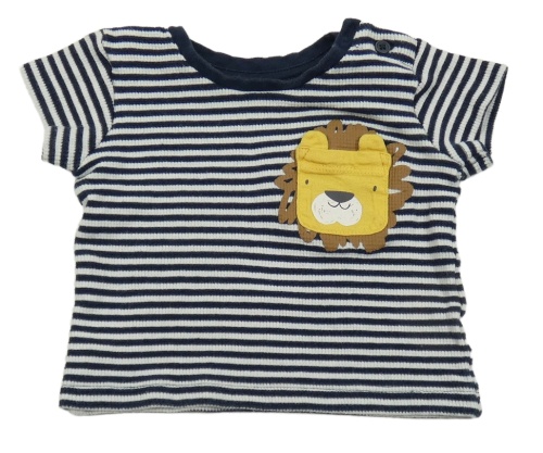 Tmavomodro-bílé pruhované žebrované tričko s lvem Matalan