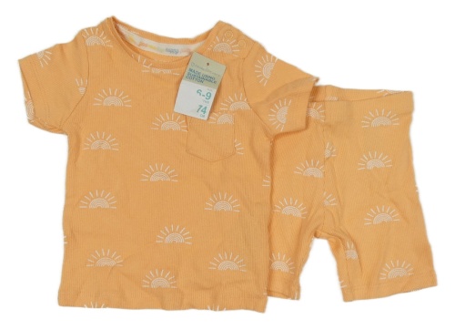 Nové - 2 set - oranžové žebrované tričko se sluníčky + kraťasy Primark