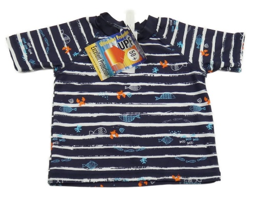 Nové - Tmavomodro-bílé pruhované UV tričko s rybami