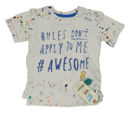 Nové - bílé melírované tričko s nápisy a barevnými skvrnkami Rebel