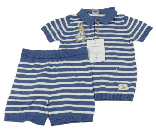 Nové - 2set - Tmavomodro-bílé pruhované pletené polo tričko s Králíčkem Petrem + kraťasy