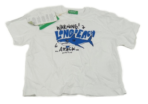 Nové - bílé tričko se žralokem a nápisy Benetton