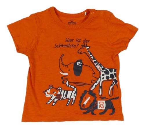 Tmavooranžové melírované tričko se zvířátky a nápisy Topomini