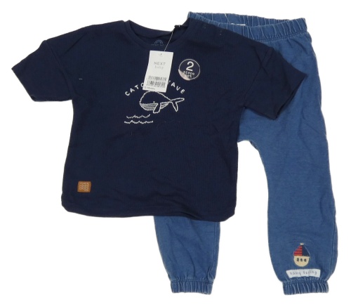 Nové - 2set - Tmavomodré žebrované tričko s velrybou + modré tepláky s výšivkou Next
