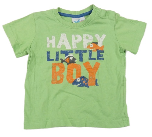 Zelené tričko s rybkami a nápisem Topomini