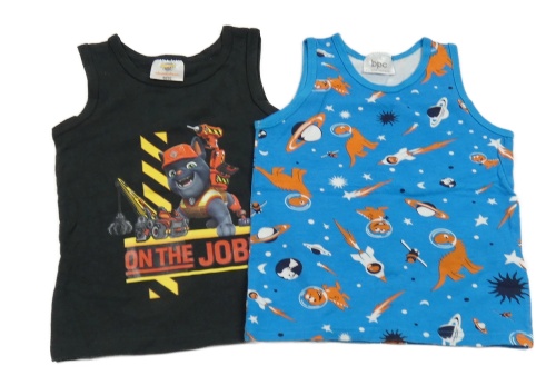 2x tílko - černé s Chargerem - Rubbleova parta + modré s raketami a dinosaury