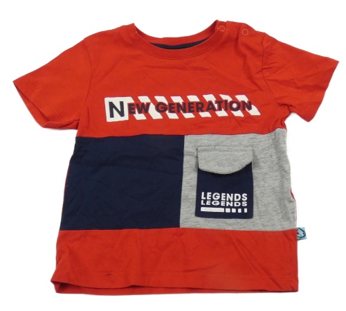 Červeno-šedo-tmavomodré tričko s nápisem a kapsou