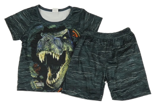 2set - Tmavozelené melírované tričko s dinem + kraťasy