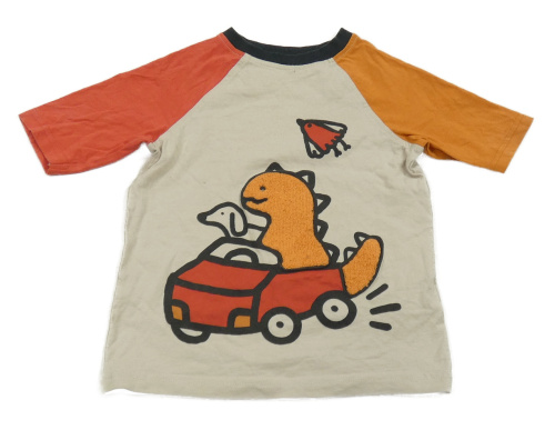 Béžovo-medovo-červené tričko s dinosaurem v autě George