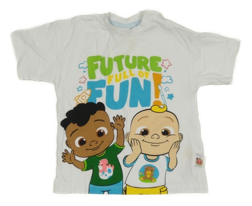 Bílé tričko s chlapečky a nápisem Cocomelon