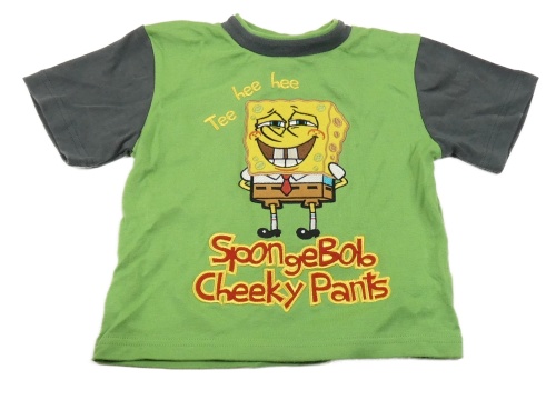 Zeleno-tmavošedé tričko se SpongeBobem