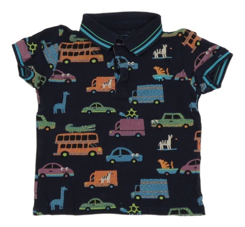 Tmavomodré polo tričko s auty a autobusy a zvířátky Bluezoo