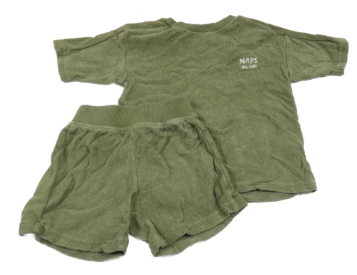 2set- Khaki froté tričko s nápisem + kraťasy George