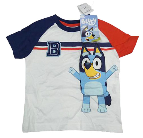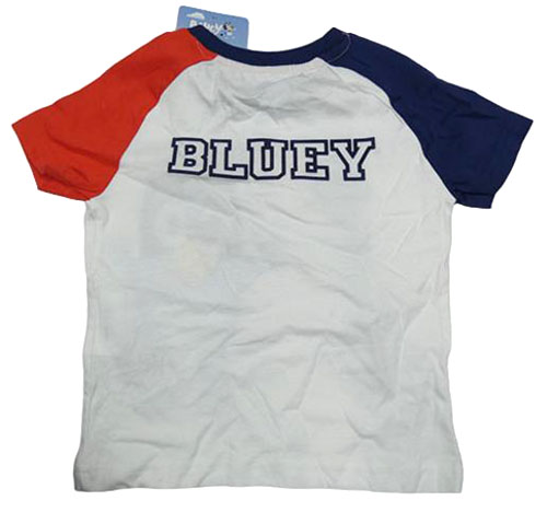 Nové - Bílo-tmavomodro-červené tričko s Bluey a pruhy Nutmeg