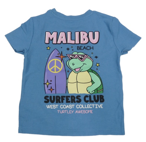 Modré žebrované tričko se želvičkou a nápisy PRIMARK