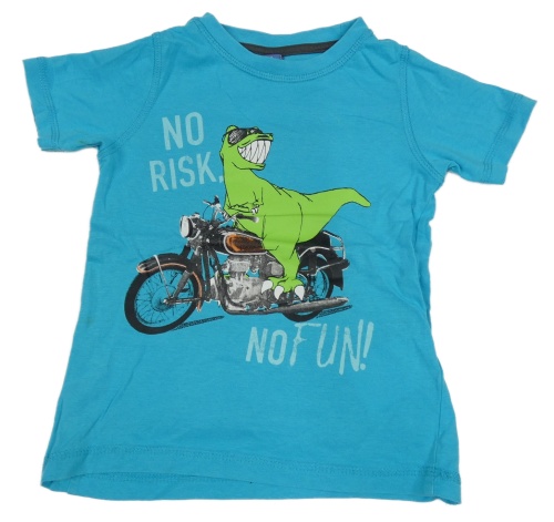 Azurové tričko s dinosaurem na motorce Dopodopo