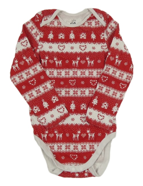 Červeno-bílé pruhované body s domky a stromky C&A