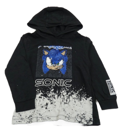 Nové - Černé triko se Sonicem z flitrů a kapucí Next