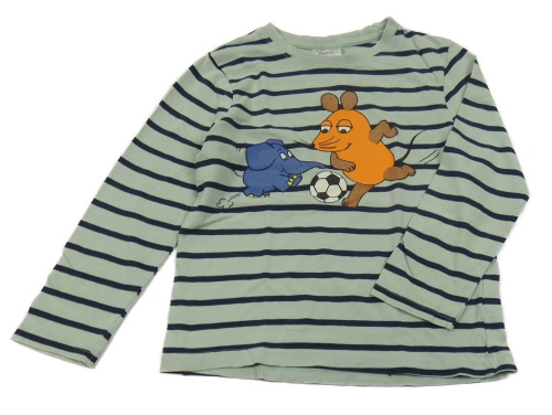 Světlekhaki-tmavomodré pruhované triko s myší a slonem