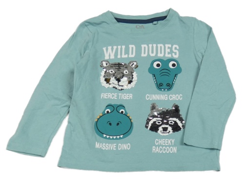 Světlemodré triko se zvířátky a flitry C&A