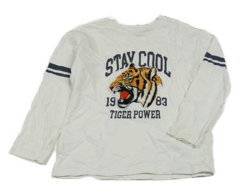 Bílé triko s tygrem a nápisy a pruhy KIABI