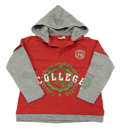 Červeno-šedé polo triko s nápisy a kapucí