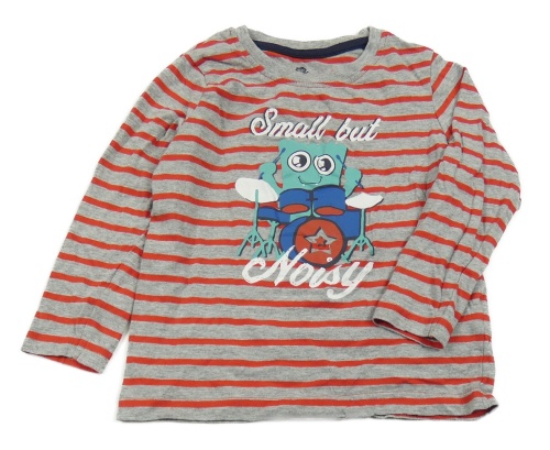 Šedo-červené pruhované triko s příšerkou a bubny Lupilu