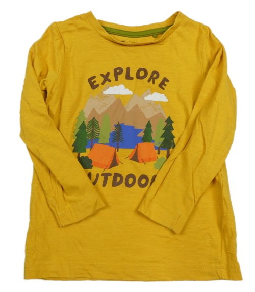 Hořčicové triko se stany a nápisy Tu