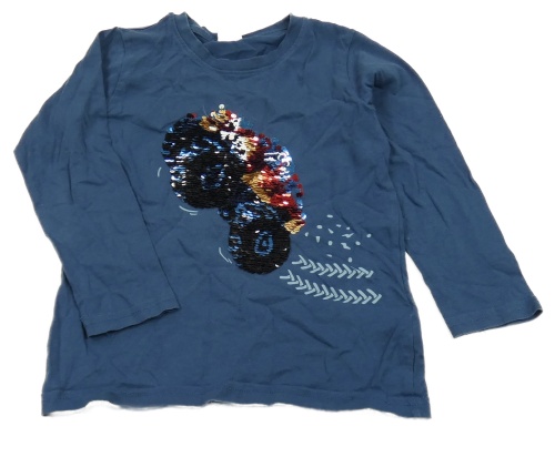 Tmavomodré triko s autem z překlápěcích flitrů Lindex