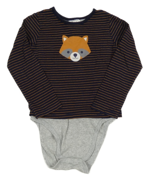 Tmavomodro-hnědé pruhované triko s mývalem a všitým body Impidimpi