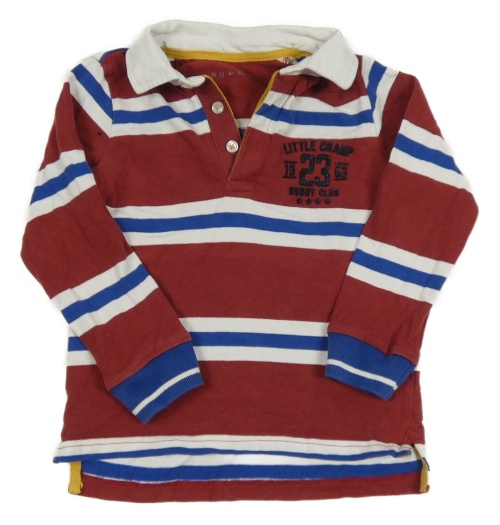 Vínovo-bílo-tmavomodré pruhované polo triko s nápisem Nutmeg