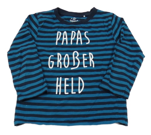 Modro-tmavomodré pruhované triko s nápisem Topomini
