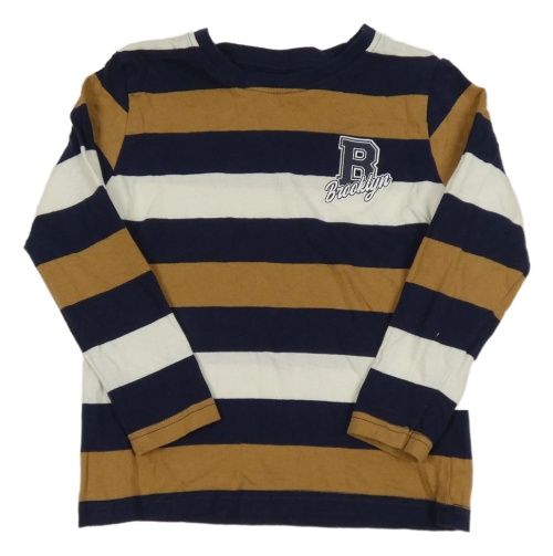 Tmavomodro-hnědo-bílé pruhované triko s písmenkem in extenso
