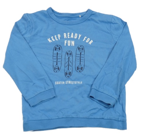 Modré mikinotriko se skateboardy a nápisy Topolino