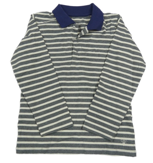 Šedo-bílo-modré pruhované polo triko