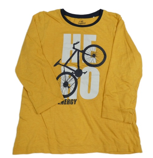Hořčicovo-tmavomodré melírované triko s kolem a nápisem Topolino