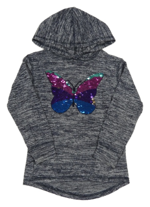 Tmavomodro-šedé melírované úpletové triko s překlápěcími flitry a kapucí Bluezoo