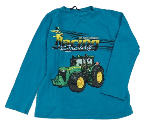 Azurové triko s traktorem a nápisem