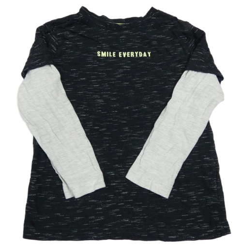 Černé žíhané triko s nápisem a šedými rukávy F&F