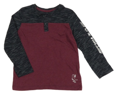 Vínovo-šedé triko s nápisem a dinosaurem C&A