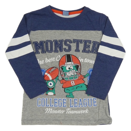 Šedo-tmavomodré melírované triko s příšerkami a nápisy a číslem a pruhy Kiki&Koko