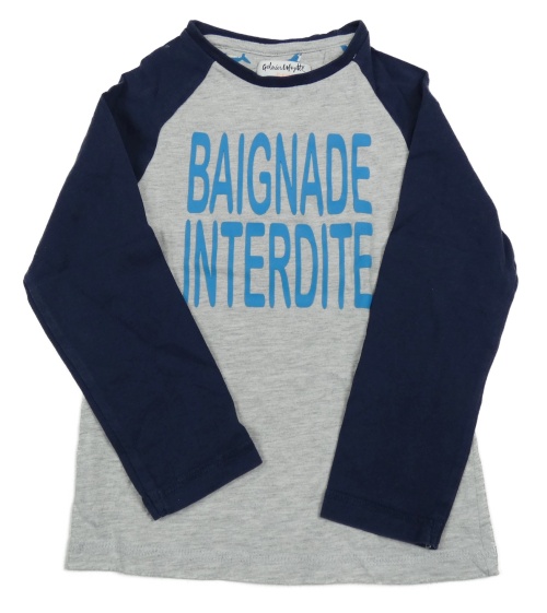 Šedo-tmavomodré triko s nápisem