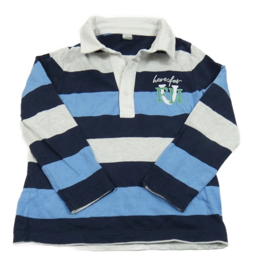 Tmavomodro-modro-bílé pruhované polo triko s nápisem Tu