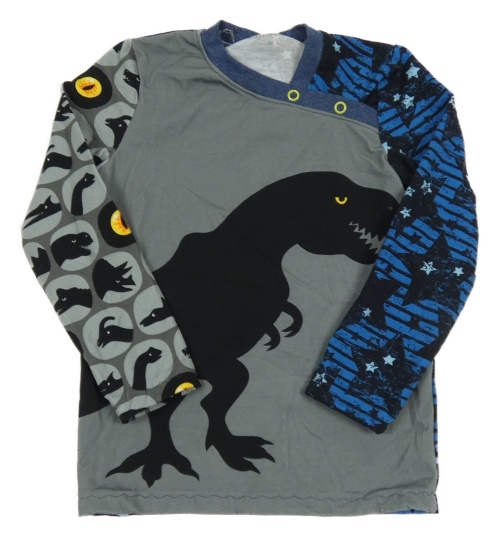 Šedo-modro-černé triko s dinosaurem a hvězdami